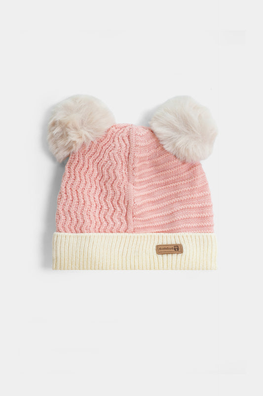 Keep your little one's head toasty and stylish with our Baby Pink Double Pom-Pom Winter...