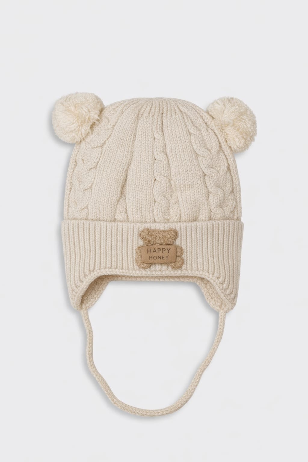 Beige Wool Baby Cap with String
