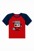 Level up their style with this fun and comfy set. It includes a soft, 100% cotton t-shirt featuring a fun gaming character graphic and a pair of comfy navy terry shorts. This set is perfect for both a day of gaming and a day of play.