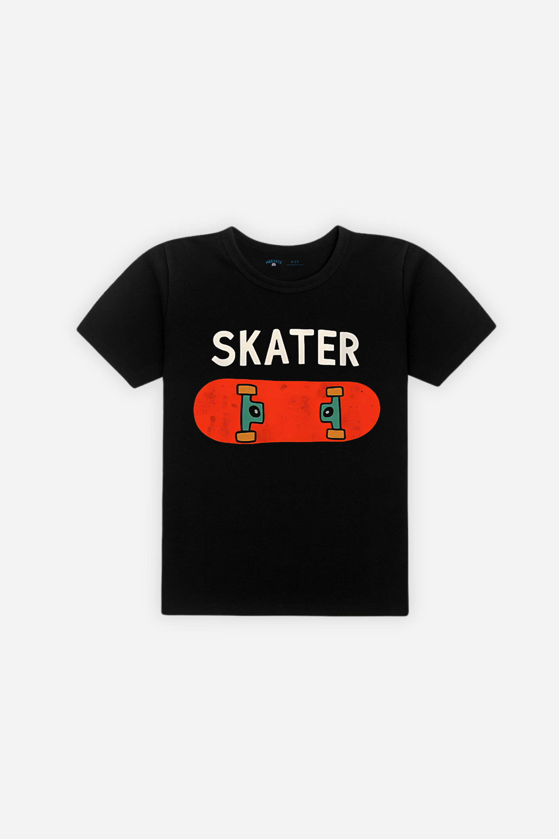 Hit the streets in style with this cool and comfy set. It includes a soft, 100% cotton t-shirt featuring a "Skater" graphic with a fun skateboard design and a pair of comfy black terry shorts. This set is perfect for both casual days and active play.